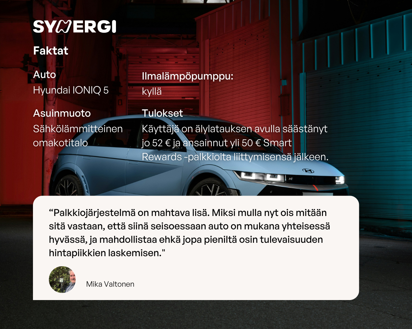Mika Valtonen löysi Synergin sovelluksen testattuaan kahta muuta optimointisovellusta, jotka eivät olleet toimineet toivotulla tavalla. Tärkeää oli myös se, että Synergin sovellusta voi käyttää, vaikka sähköyhtiö vaihtuisi.